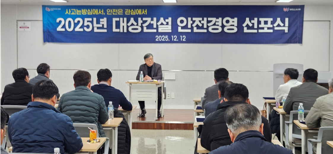 대상건설은 이번 안전경영 선포식을 계기로 본사와 현장, 협력업체가 함께하는 통합 안전문화 정착과 체계적인 안전보건관리 활동을 강화해 나갈 예정이다.