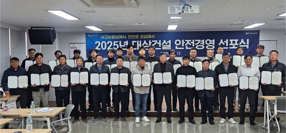 대상건설은 임직원의 안전의식 고취와 전 현장의 무재해 달성을 위해 2025년 안전경영선포식을 개최하였다.